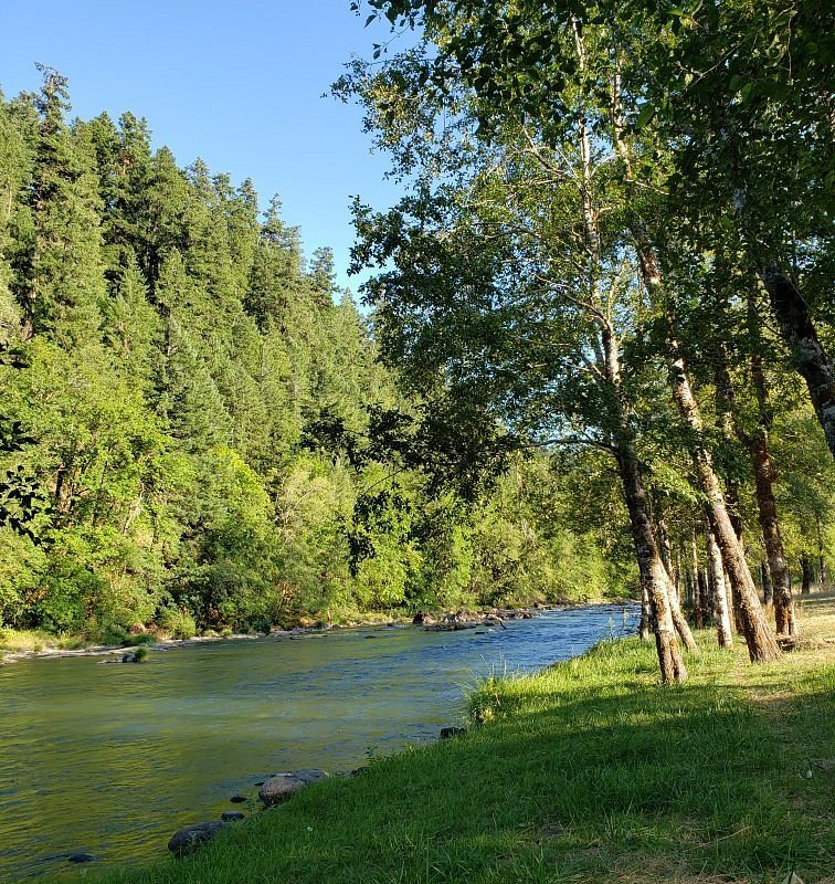 Casey’s Riverside RV Resort is set on the banks of the Middle Fork of the Willamette River, inside the Willamette National Forest. It is exclusively for hard-sided RVs and trailers. No tent camping, no dry camping, no roughing it. Full hook-ups across 56 paved sites including water, electric, sewer, cable TV, and Wi-Fi.